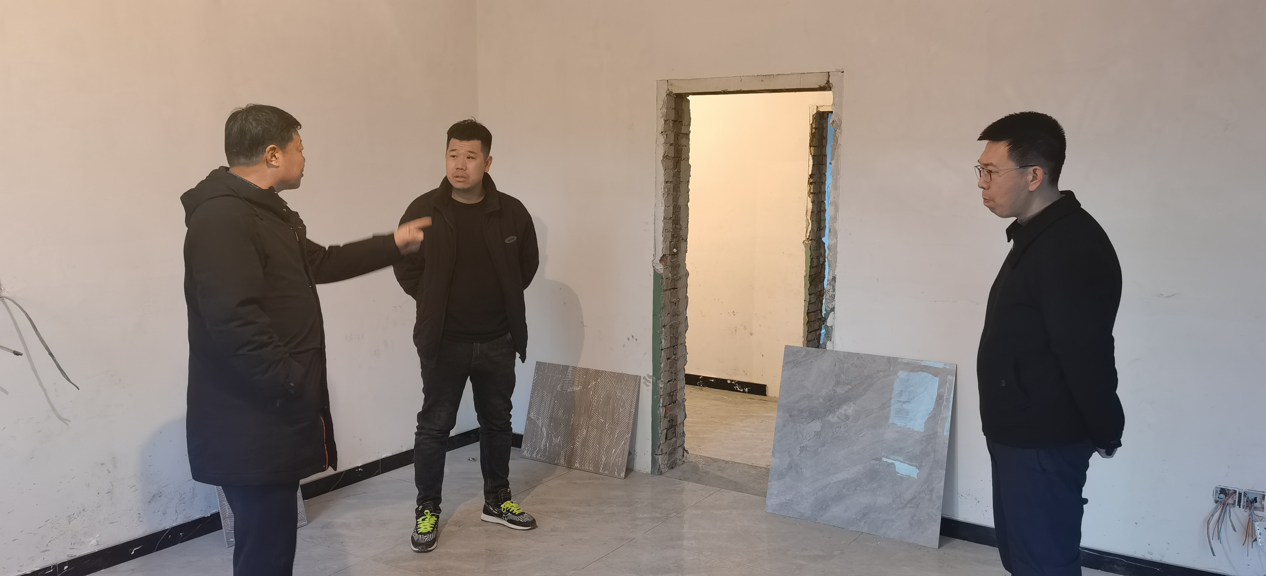 在火药库沟原食药监局办公楼装修施工现场,徐俊儒要求施工单位做好人员管理和水、电管护。进出现场人员要做好人员登记和温度测量。在施工时对涉及焊接、切割等高风险工作时,要更加注重安全防护,确保安全施工。