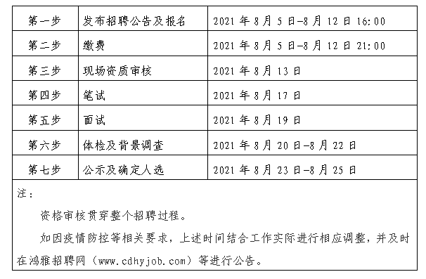 2021年8月5日至 2021年8月12日16:00 在鸿雅招聘网(http://www.cdhyjob.com/)、鸿雅微信公众号、乐玩·体育官方网站等发布招聘公告。